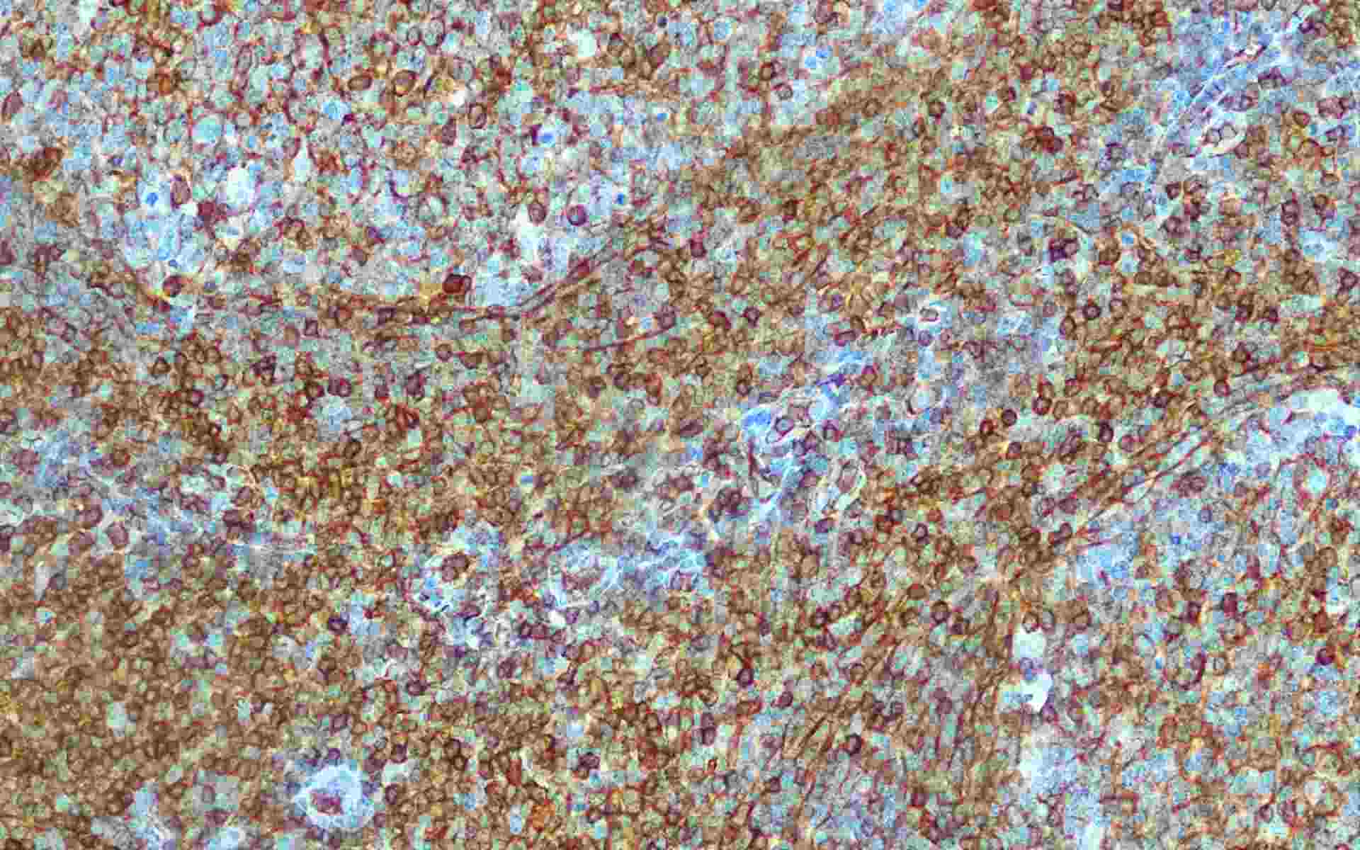CD99是由MIC2基因编码的一种分子量为32kDa的跨膜糖蛋白,存在于某些骨髓,脾淋巴结,胸腺皮质细胞,卵巢颗粒细胞,大多数β细胞,中枢神经系统的室管膜细胞,睾丸支持细胞和内皮细胞。抗体CD99主要用于尤文氏肉瘤和原始神经外胚层肿瘤的研究。